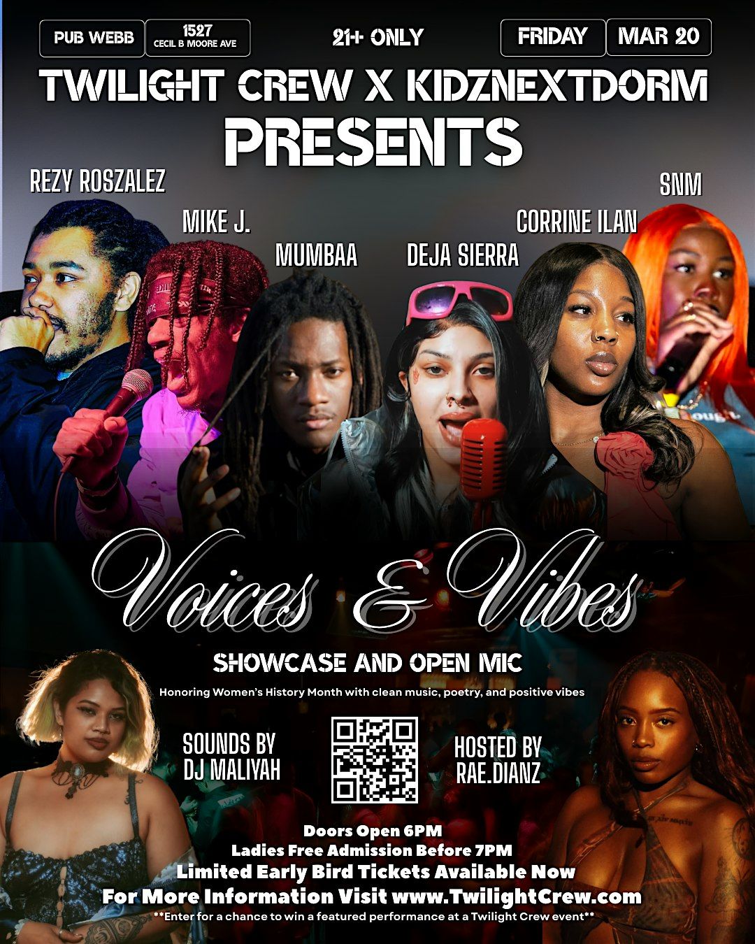 Voices & Vibes: Showcase & Open Mic — A night of music, poetry, and live performances featuring incredible local artists.Agenda