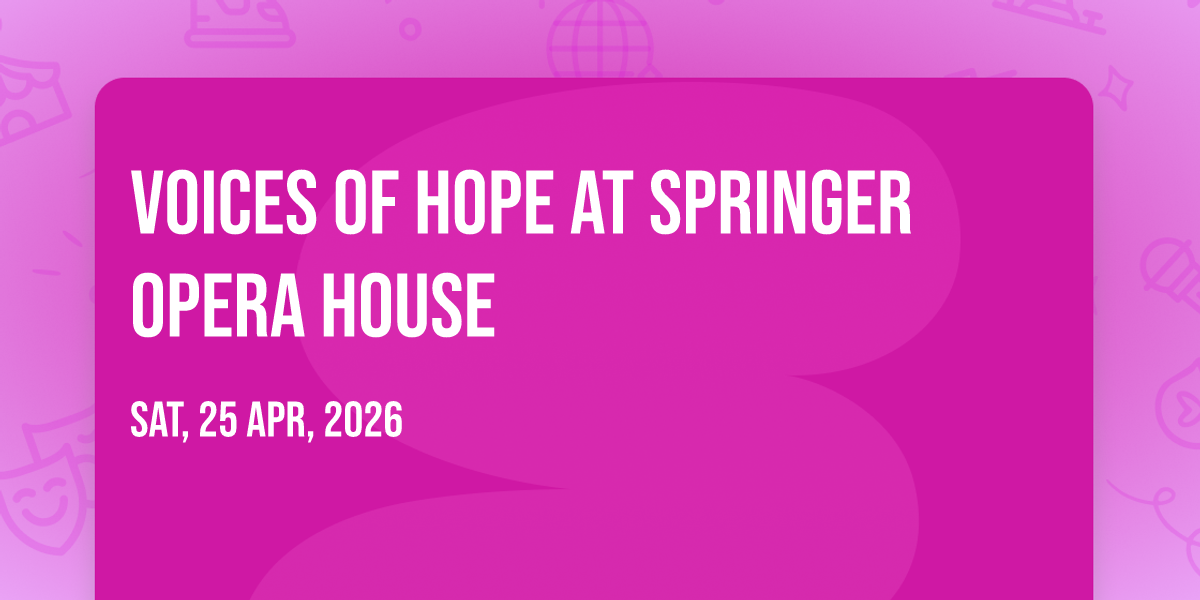 🎉 Welcome to Voices of Hope at Springer Opera House, where the impossible becomes possible and dreams take flight! 🏛️ Join us at Springer Opera House in the heart of Columbus, GA for an event that will redefine your expectations. 📅 On April 25th, 2026 at 05:00 PM, witness the transformation of space and time into something truly magical. ✨ It's a curated experience combining the best of innovation, entertainment, and community spirit, creating moments that will be remembered for years to come. Whether you're a first-time visitor or a seasoned enthusiast, prepare to be amazed. 🎊 Book now to ensure your place in this unforgettable experience!