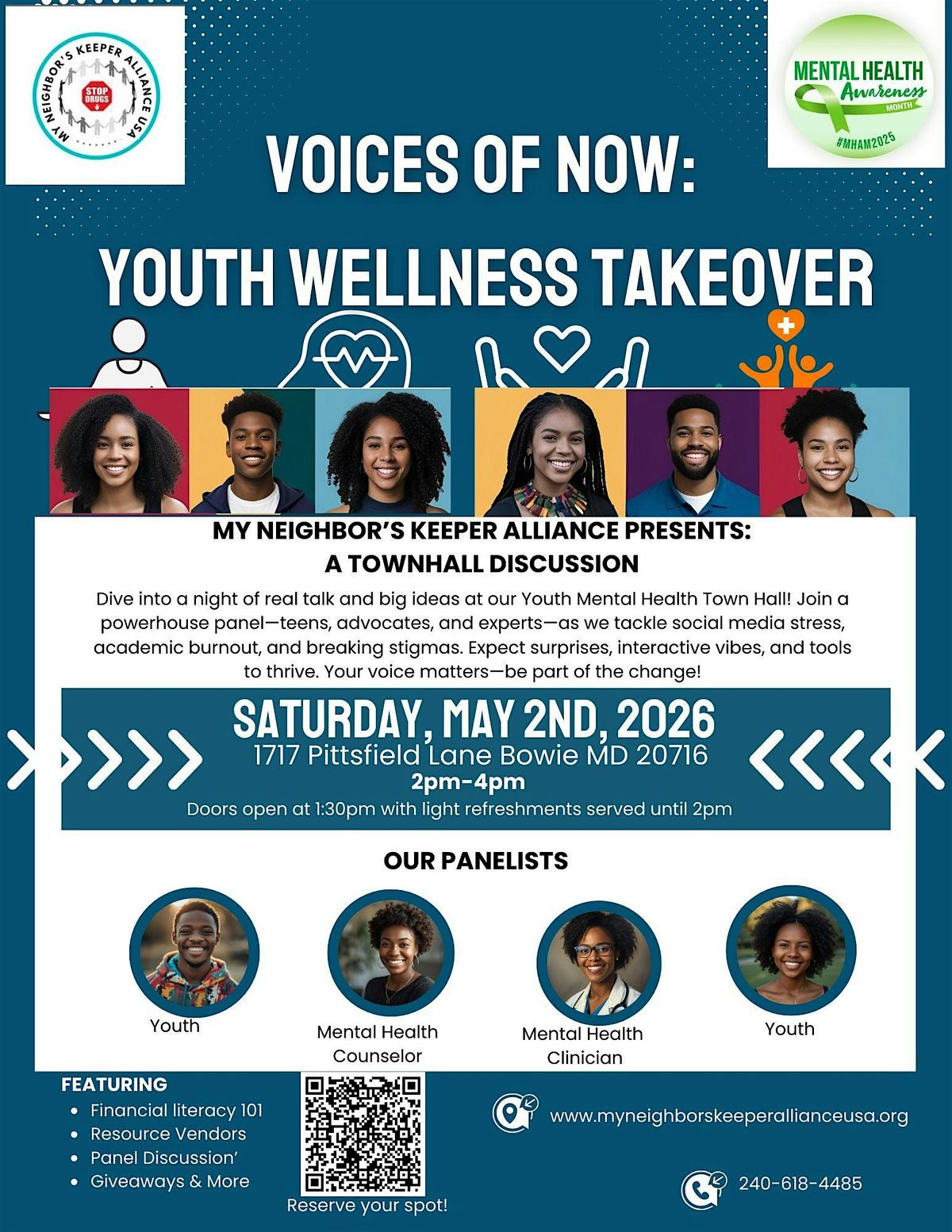 My Neighbor's Keeper Alliance Inc. (MyNKA) proudly presents the 2nd Annual Voices of Now: Youth Wellness Town Hall, a free afternoon dedicated to the mental, emotional, and social wellbeing of our young people. After a tremendously successful inaugural event in 2025, we are back — bigger, bolder, and more determined than ever to create a space where youth feel safe, seen, and supported.
