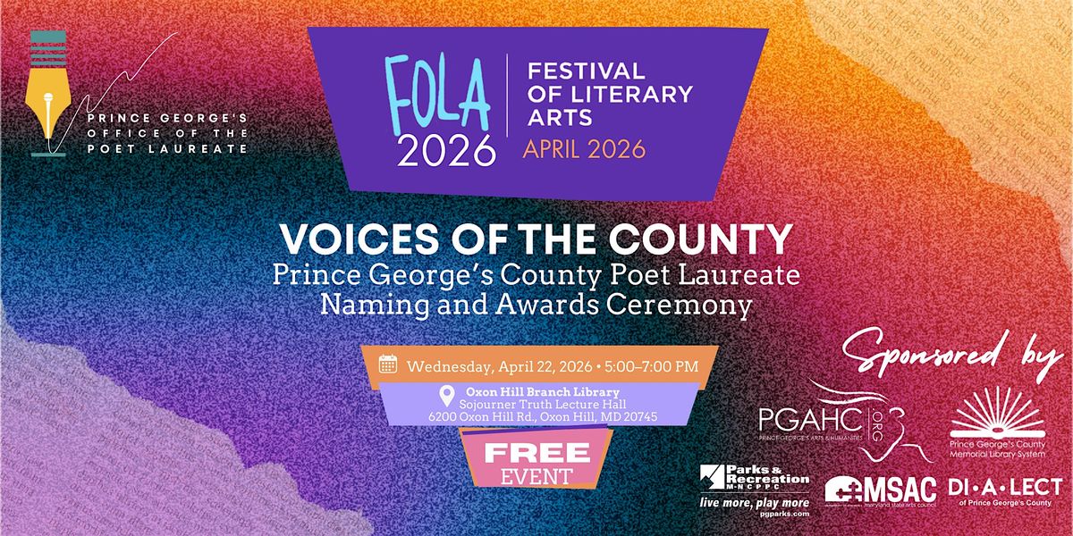 The Prince George's Arts and Humanities Council, in partnership with Dialect of Prince George's County and the Lucille Clifton Literary Scholarship Program, invites you to witness history — as we crown our next County Poet Laureate and Youth Poet Laureate and celebrate the literary voices shaping our community.