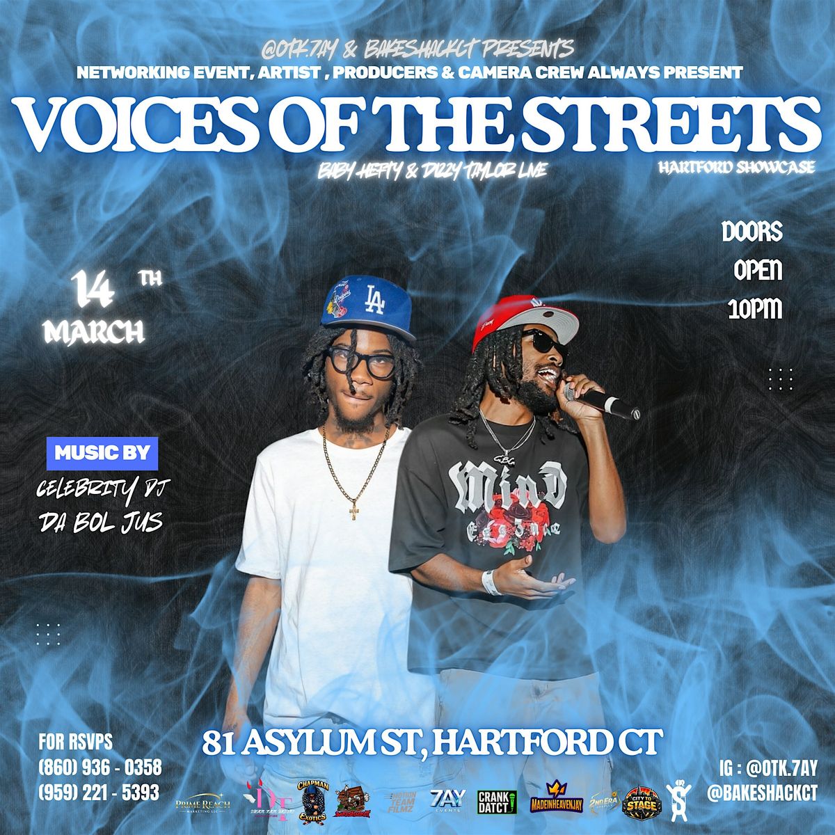Voices of the Streets is a high-energy networking showcase bringing together artists, producers, and camera crews for a night of live performances and creative connection in Hartford. Featuring performances by Baby Hefy and Dizzy Taylor Live, this event is designed to spotlight talent, build industry relationships, and create opportunities within the local music scene. Music will be provided by Celebrity DJ and Da Bol Jus, setting the vibe all night.