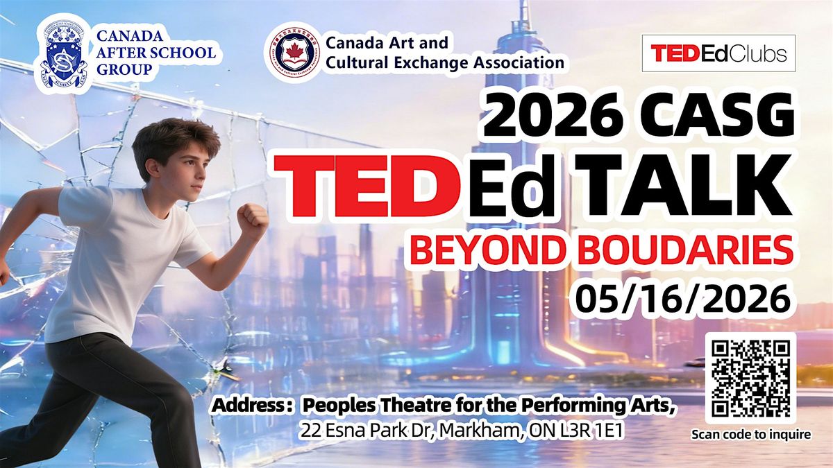 Mark your calendars for May 16th, and get ready for an unforgettable day at CASG TED-Ed Talk Event! Welcome to the Voices of Tomorrow: 2026 CASG TED-Ed Student Talks Showcase! Join us for an inspiring filled with thought-provoking ideas and innovative presentations by talented youth from age 6 to 15.