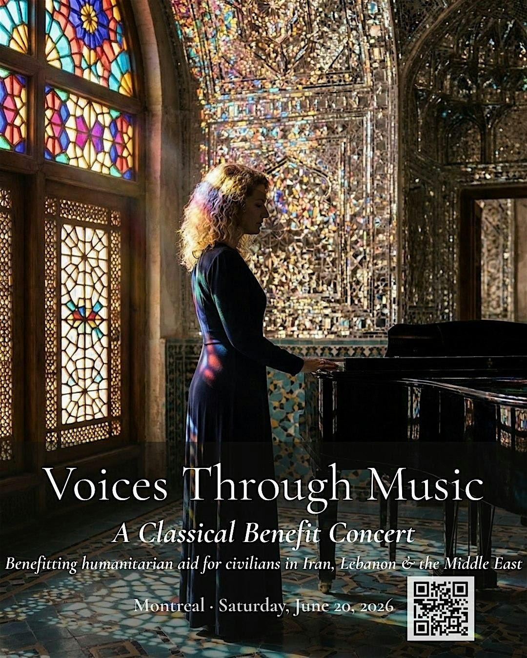 Voices Through Music is an intimate classical benefit concert bringing together a small group of pianists for an evening of music chosen not just for its beauty, but for its meaning. The program moves from grief to memory to resilience to hope — closing with Iranian music that speaks directly to the people this concert exists for.