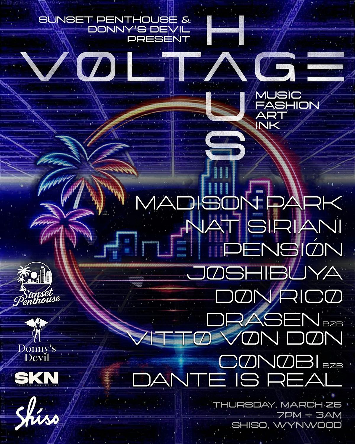 This Miami Music Week, three of Miami’s fastest-rising creative forces unite for one night only: Sunset Penthouse x Donny’s Devil x SKN Tattoo Collective.