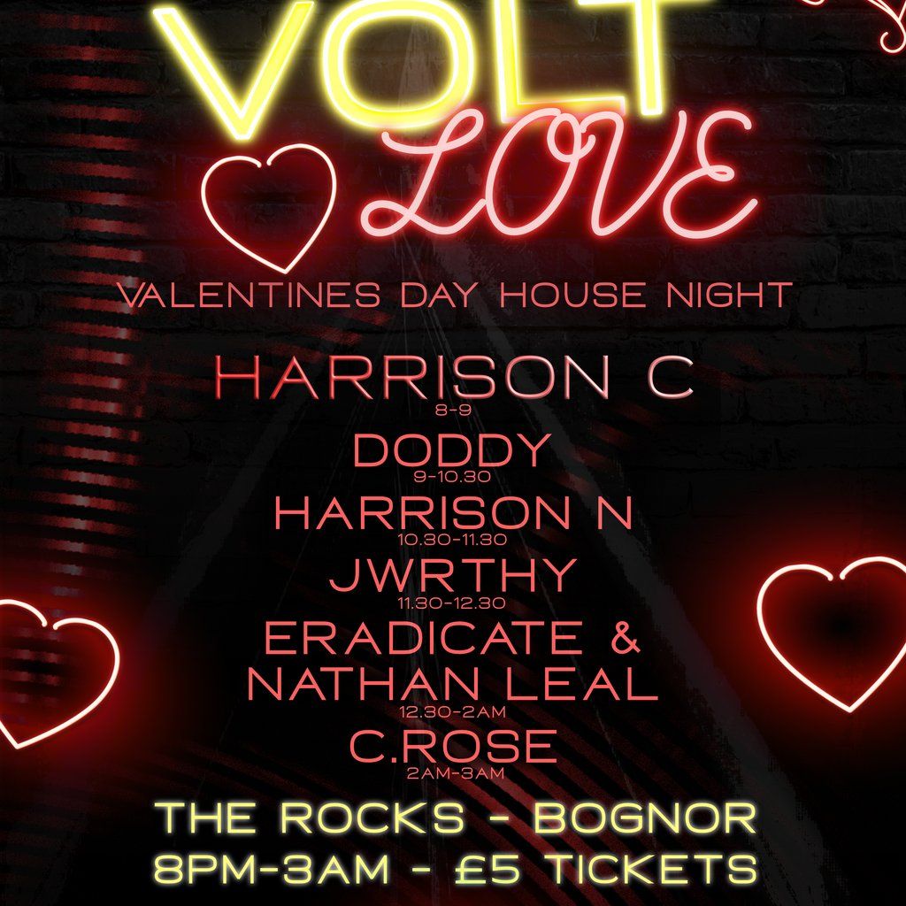 Our very first event! VoltHouse brings you VOLT:LOVE - a night of energetic house music - Rocks Bar, Bognor Regis. 5+ DJ's & Giveaways. Shot Girls.