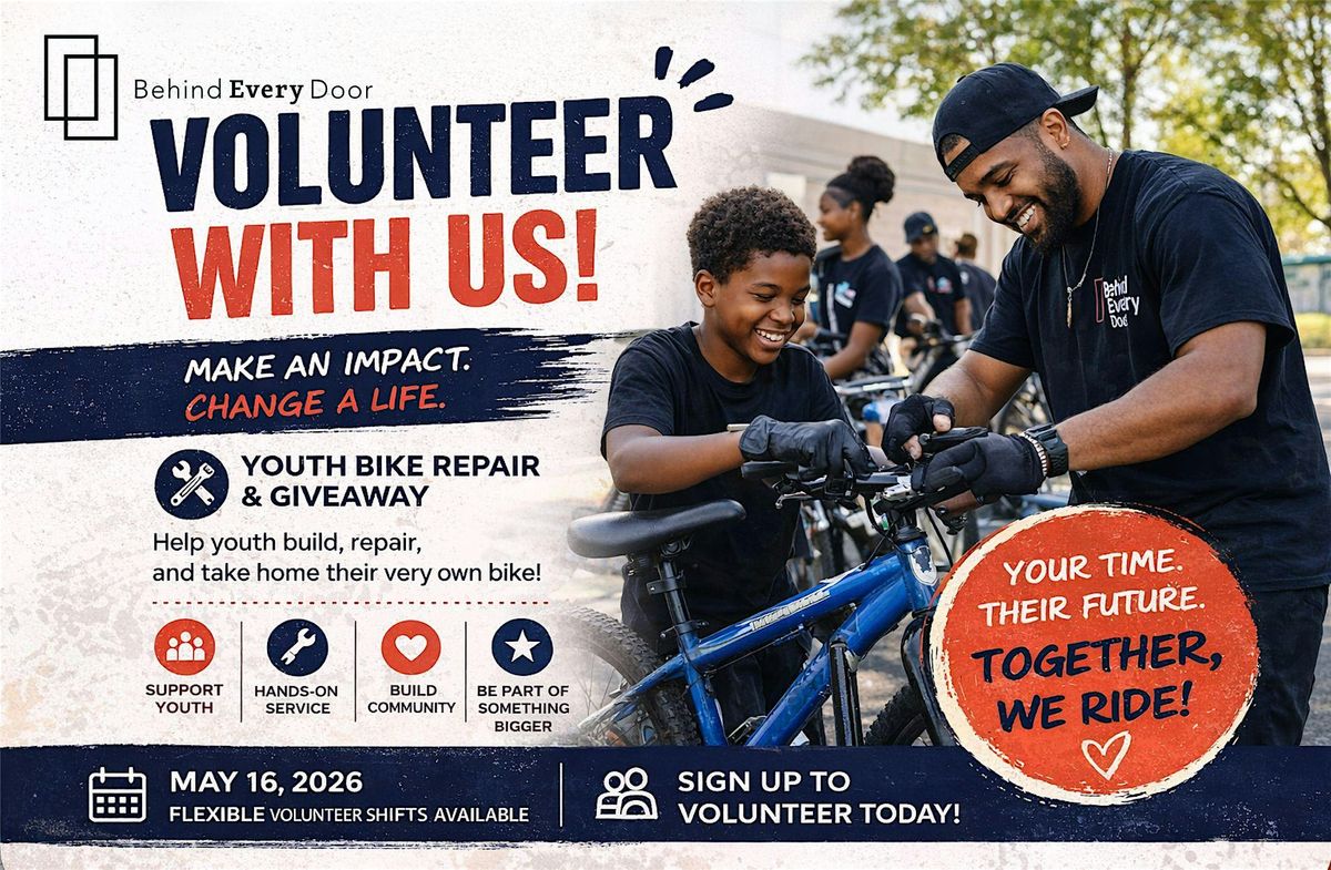 Behind Every Door is partnering with Bike Gangs of Fort Worth to provide free, restored bikes to youth. Volunteers will help create a fun, high-energy environment where kids can repair their own bikes and take them home.