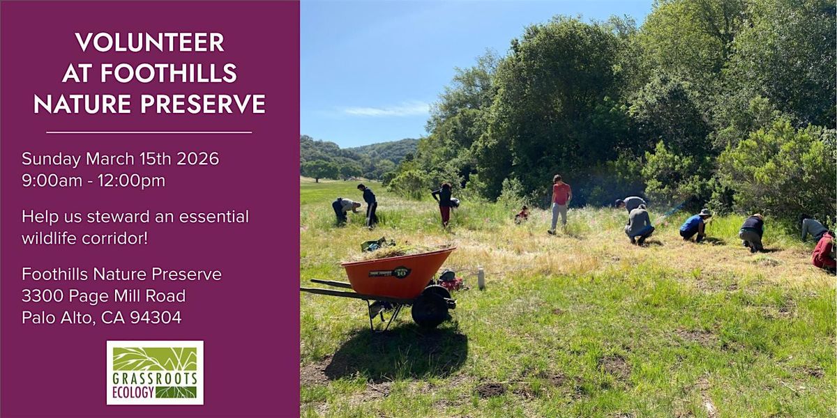 Parking: Meet at the Interpretive Center within Foothills Nature Preserve, 3300 Page Mill Rd, Palo Alto 94304. Please carpool if possible. The road up to the site is very steep and curvy. Download driving instructions ahead of time, as there is limited cell reception up on Page Mill Rd. There will be a ranger at the park entrance, and volunteers will receive entry details in a reminder email.