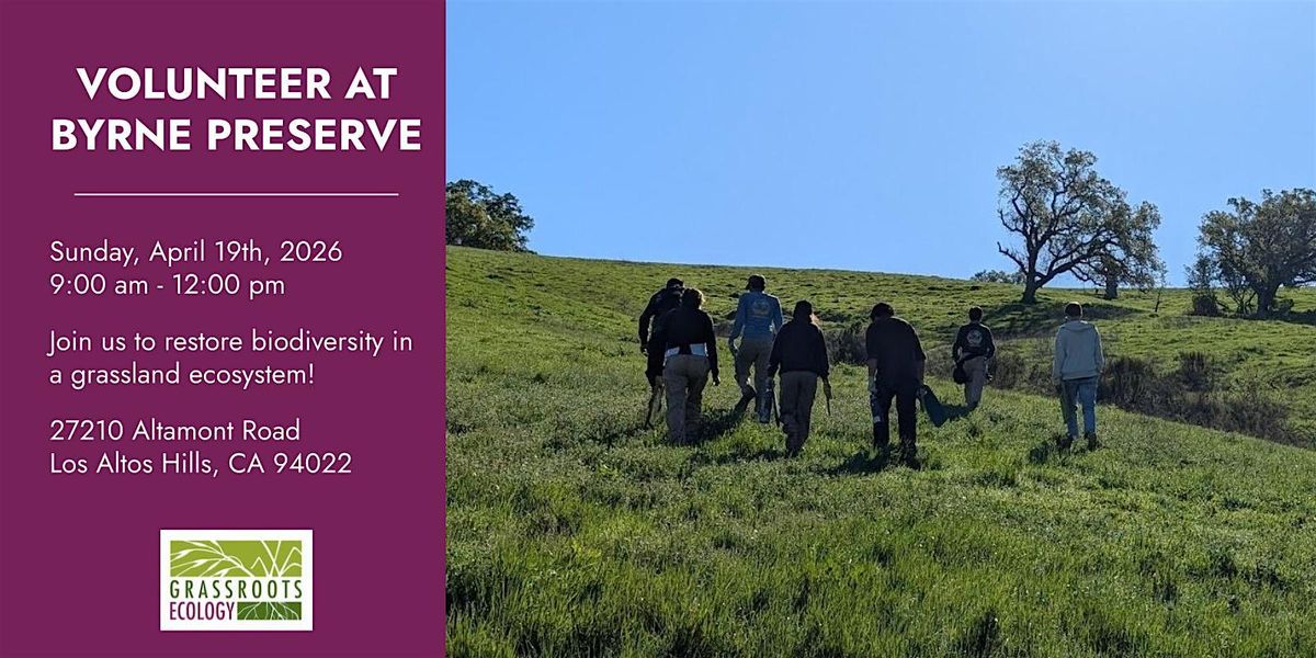 Byrne Preserve's grassland, oak woodlands, and riparian corridor are home to an abundance of wildlife, including coyotes, bobcats, California quail, red tailed hawks, and variable checkerspot butterflies. The work you do will support the health of the preserve's ecosystems!