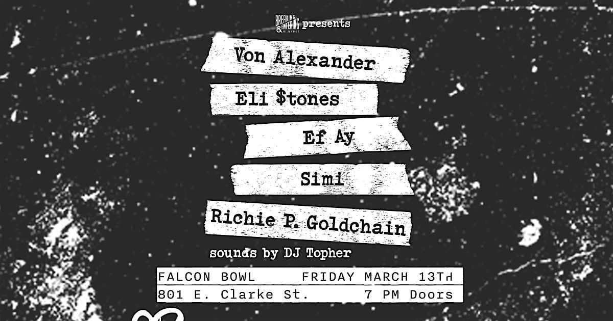 Breaking And Entering are heading to Falcon Bowl in Riverwest on Friday, March 13th, and we're bringing a host of talented artists with us!