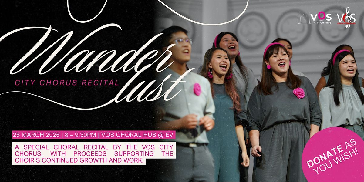 This recital is presented on a donate-as-you-wish basis, with an encouraged minimum donation of $20 per ticket. Donations of $50 and above per ticket will be automatically entered into a Lucky Draw, which includes exciting prizes! All donations will support the choir’s year-end concert tour to Prague and Berlin, enabling VOS City Chorus to share Singapore’s choral voice on the international stage.