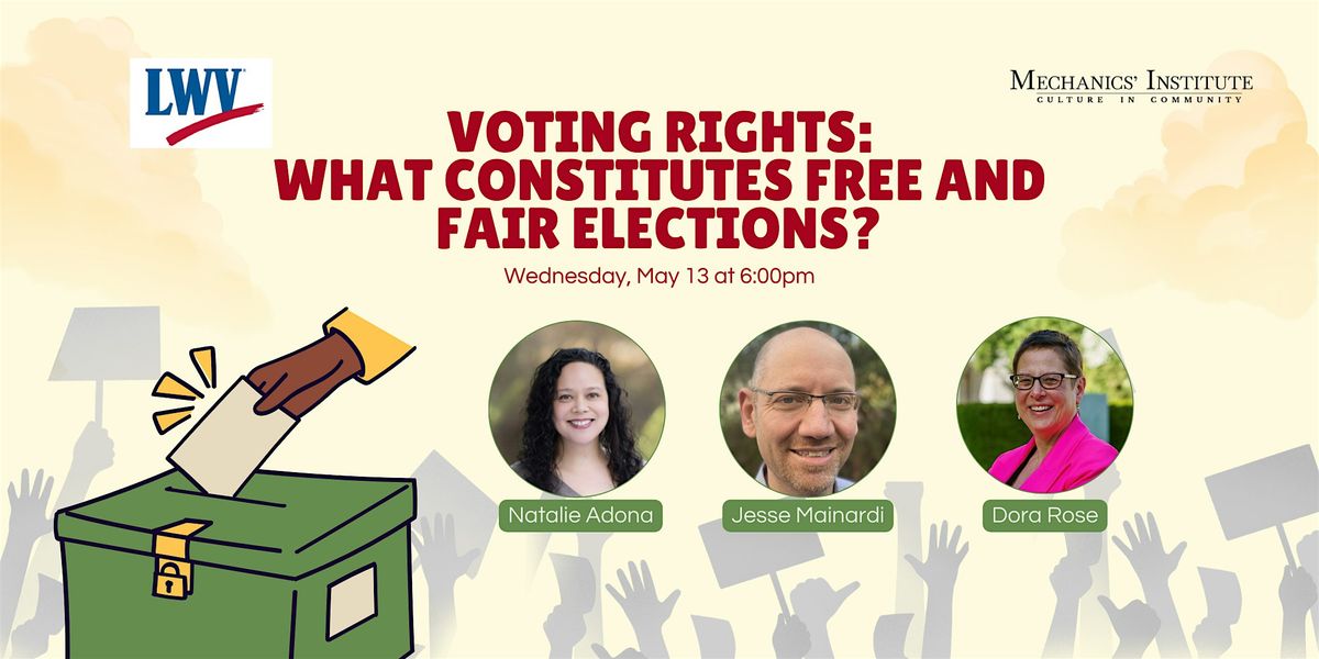 Featuring Natalie Adona, Registrar of Voters for Marin County-Department of Elections, Professor Jesse Mainardi, UCLaw SF, and Dora Rose, Deputy Director, League of Women Voters of California. Co-sponsored by the League of Women Voters of California