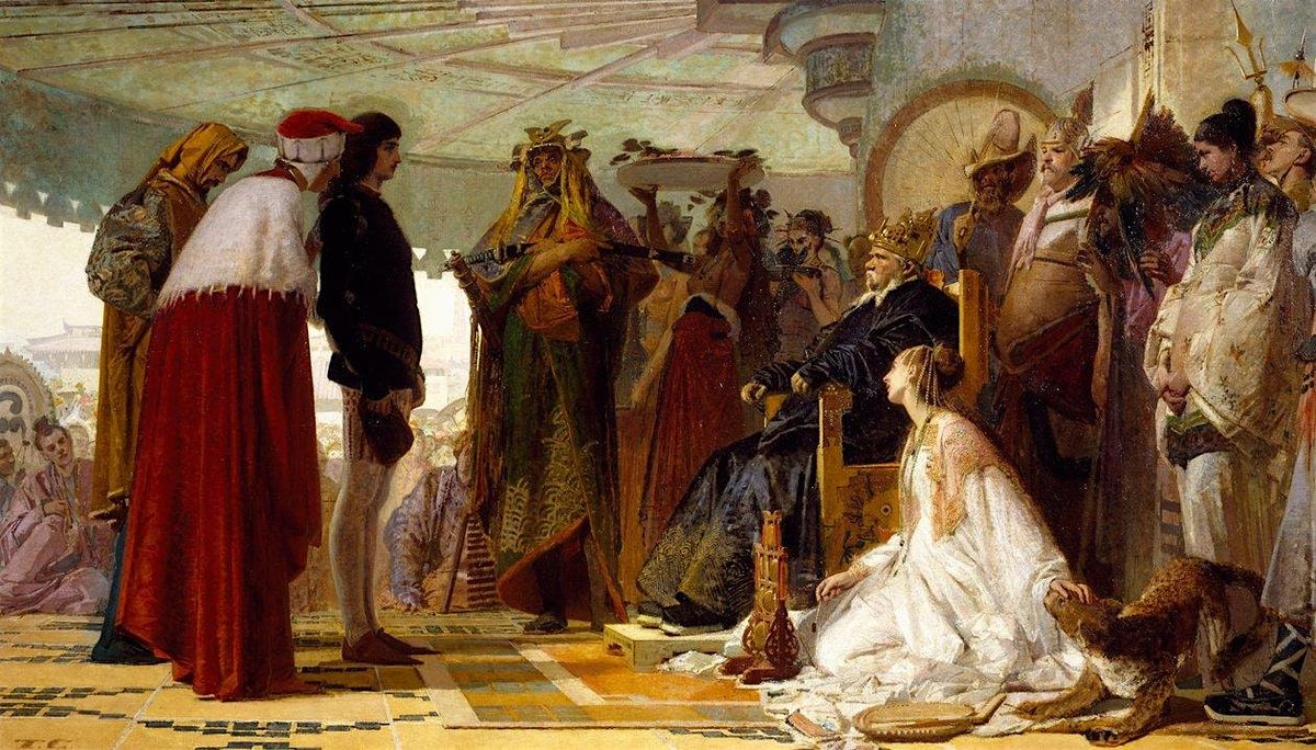 (painting by Tranquillo Cremona, Marco Polo alla Corte del Gran Khan. 1863. It is in itself a 'fantastical' imagining of an East Asian royal court)