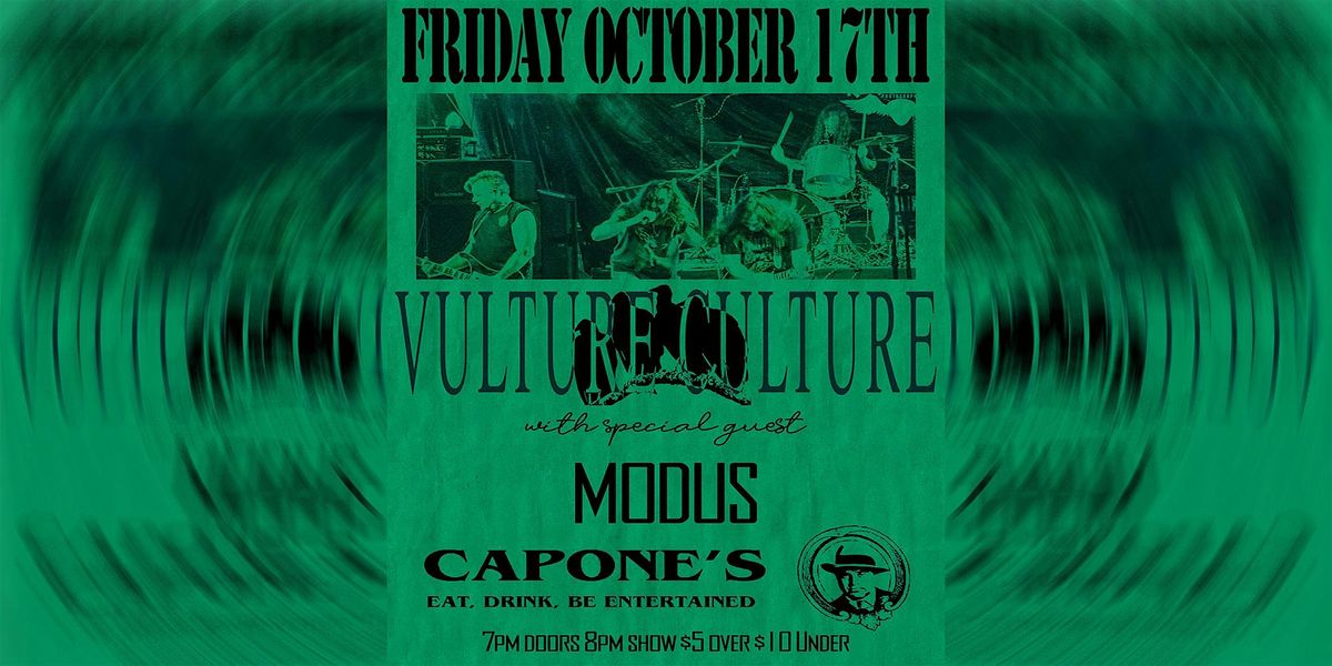 Vulture Culture - high octane, high energy 4-piece metal band out of east Tennessee. Stylistically weaving between melodic thrash, hardcore, and classic metal, Vulture Culture churns out blistering riffs, gut-wrenching bass, and percussive contortions alongside soaring vocal melodies and guttural aggressions.