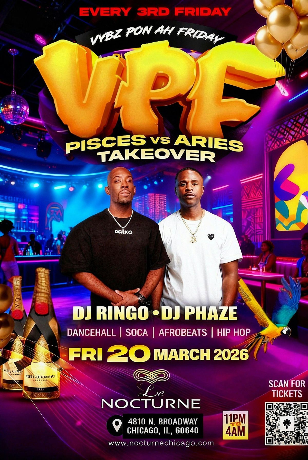 Expect nonstop Afrobeats, Dancehall, Reggae, Hip-Hop & Caribbean vibes all night long.