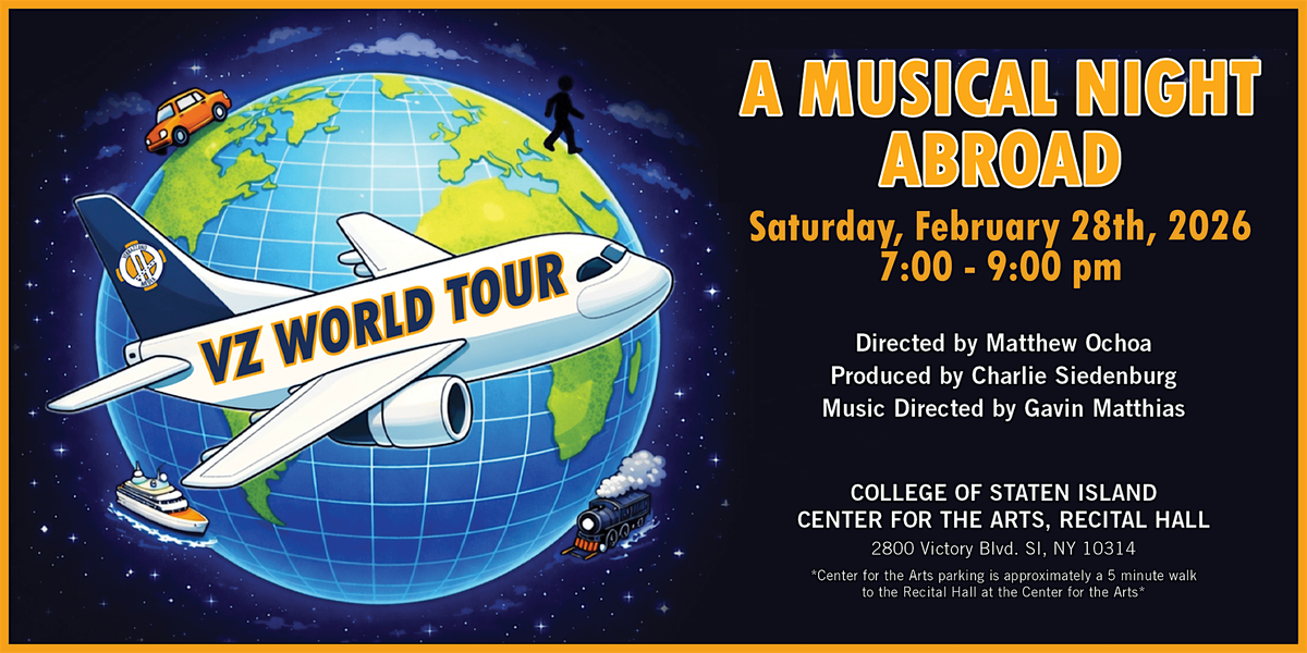 VZ World Tour: A Musical Night Abroad invites audiences on a musical journey across the globe, featuring songs from musicals set around the world and performed by some of Staten Island's Finest Young Performers. From Paris to Buenos Aires, London to Bangkok, this cabaret celebrates how musical theatre captures culture, place, and the universal language of song. One night. Many destinations. No passport required.
