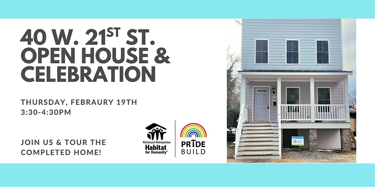 Richmond Habitat is excited to host an open house at the completed new home build on 40 W. 21st St. We'd like to thank all the volunteers and sponsors who helped to make this home possible!