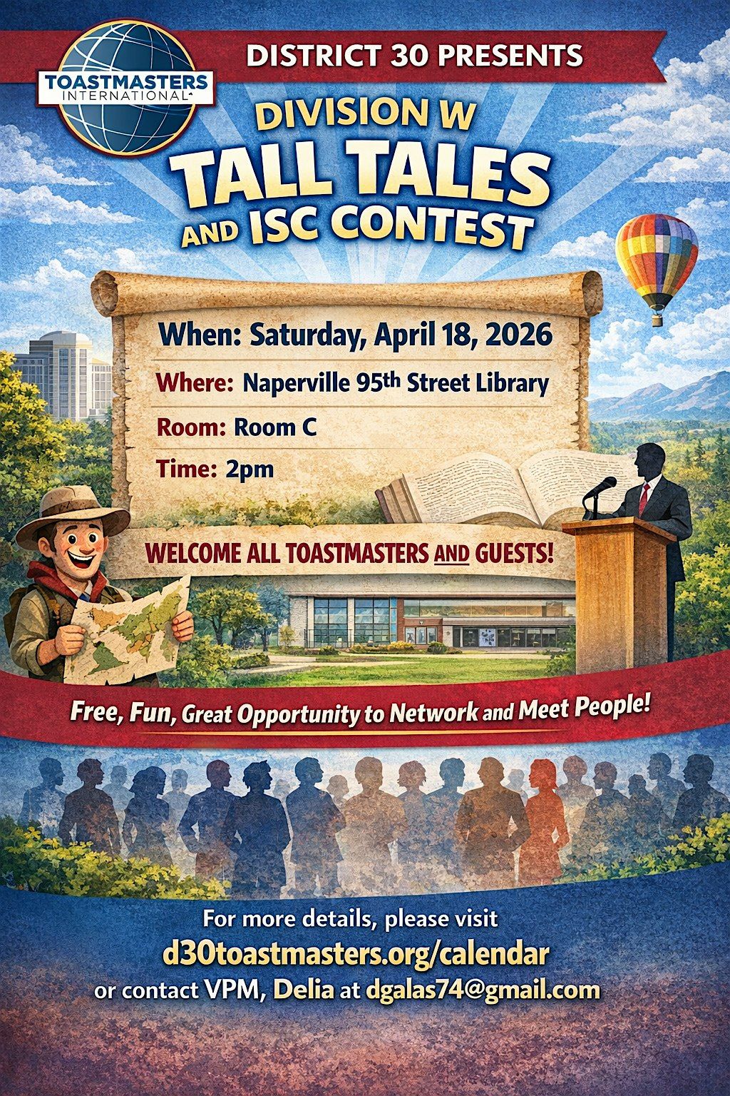 Get ready for an exciting in-person event where creativity meets storytelling! Join us at the W Division Tall Tales & International Speech Contest to witness hilarious tall tales and inspiring speeches from talented speakers. Whether you're a fan of humor or motivation, this is the place to be. Come enjoy great stories, connect with others, and be part of a lively community. Don’t miss out on a fun-filled afternoon of entertainment and inspiration!