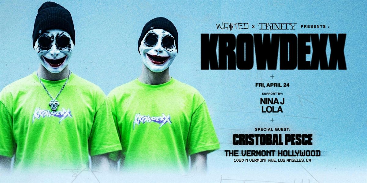 At the wheel, Krowdexx makes their LA debut alongside Cristobal Pesce at The Vermont Hollywood on April 24 for a full send hard techno nightAbout this Event