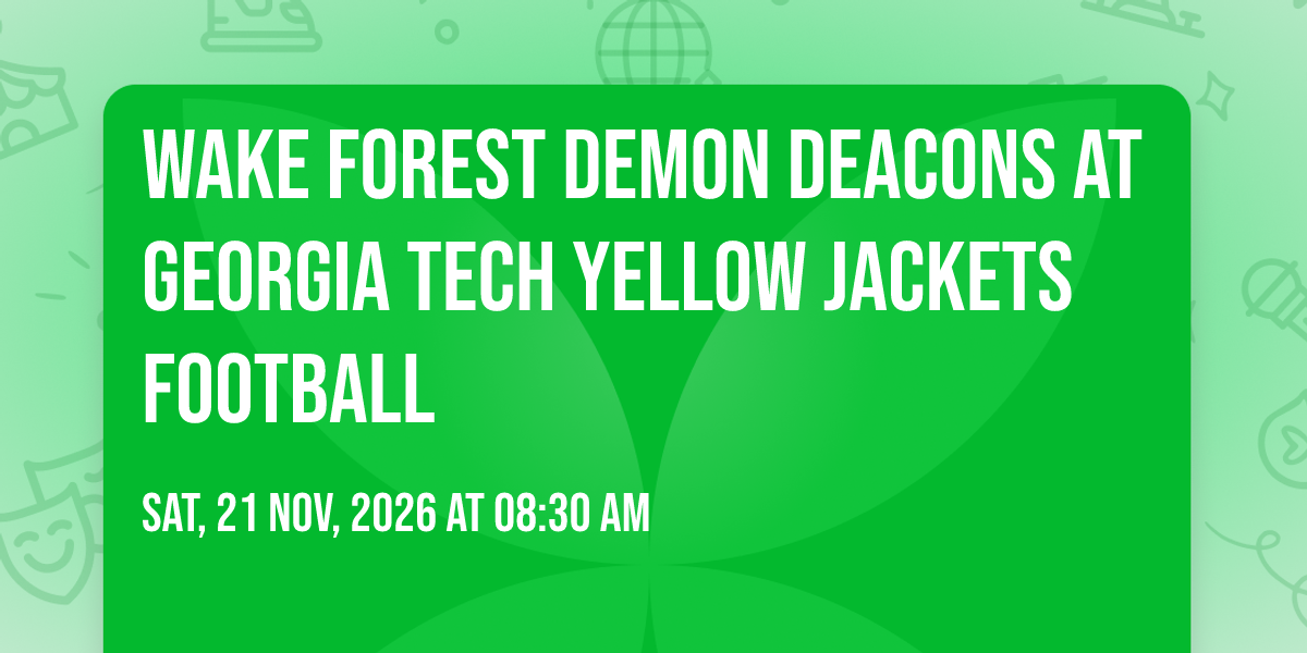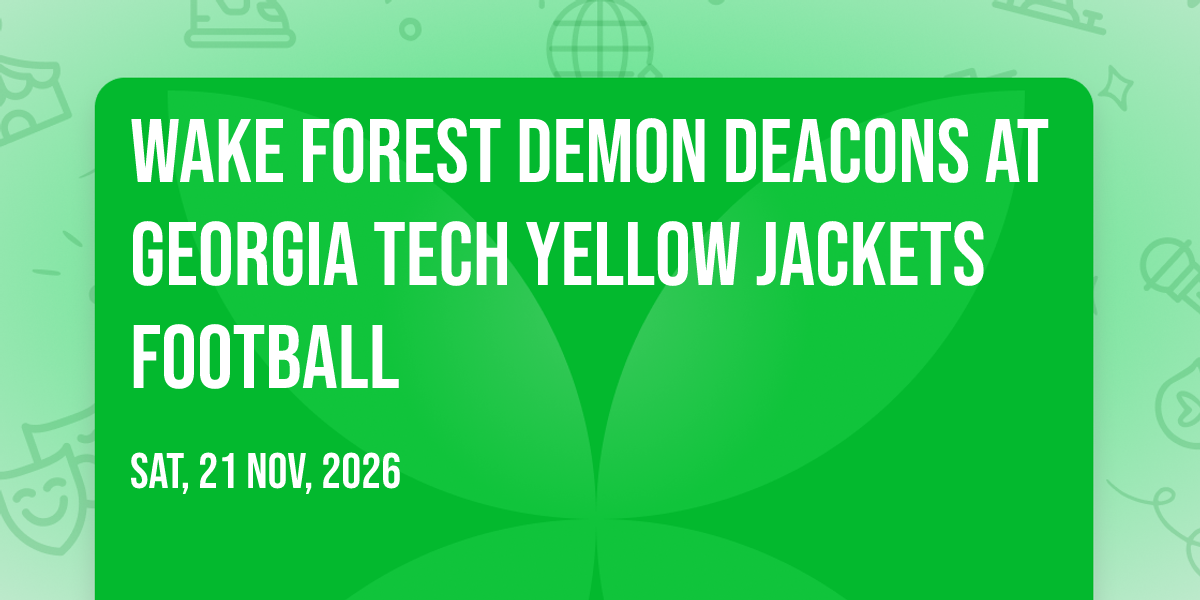 📍 Location: 33.7724, -84.3928✨ Embark on an extraordinary journey at Wake Forest Demon Deacons at Georgia Tech Yellow Jackets Football, where every moment promises to be unforgettable! 🌟 Imagine of transforming Bobby Dodd Stadium in the heart of Atlanta, GA into a realm of endless possibilities. 📅 Join us on November 21st, 2026 at 08:30 AM for an experience that will challenge your imagination and exceed your expectations. 🎯 This carefully curated event combines the finest elements of entertainment, innovation, and community spirit. Whether you're an adventure seeker, culture enthusiast, or someone looking for unique experiences, this event offers something special for everyone. 🎊 Don't miss this chance to be part of something extraordinary!