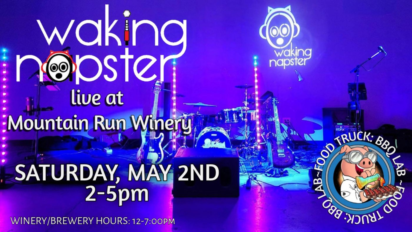 Come out Saturday, May 2nd for a great live music event featuring Waking Napster at Mountain Run Winery!