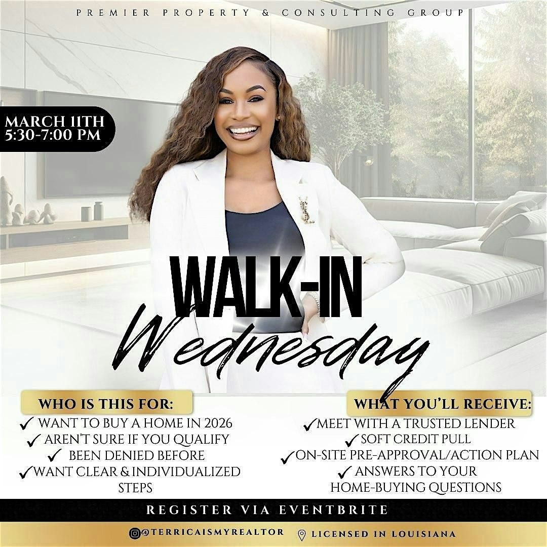 Walk-In Wednesday is an in-person homebuyer strategy session designed to help you understand exactly where you stand in the home-buying process and what steps to take next.