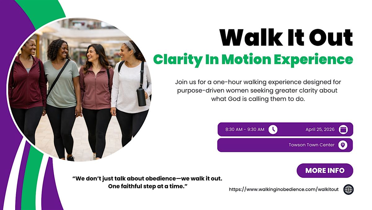 Join us in person for Walk It Out: Clarity In Motion Experience! A one-hour walking experience designed for purpose-driven women who desire greater clarity in what God is calling them to do.