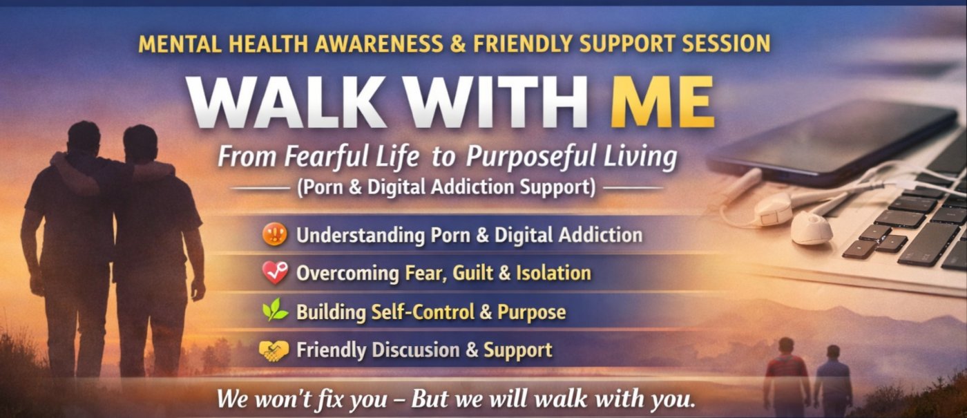 WALK WITH ME is a mental health awareness and friendly support session created to offer a safe, non-judgemental space for individuals who feel stuck and overwhelmed.