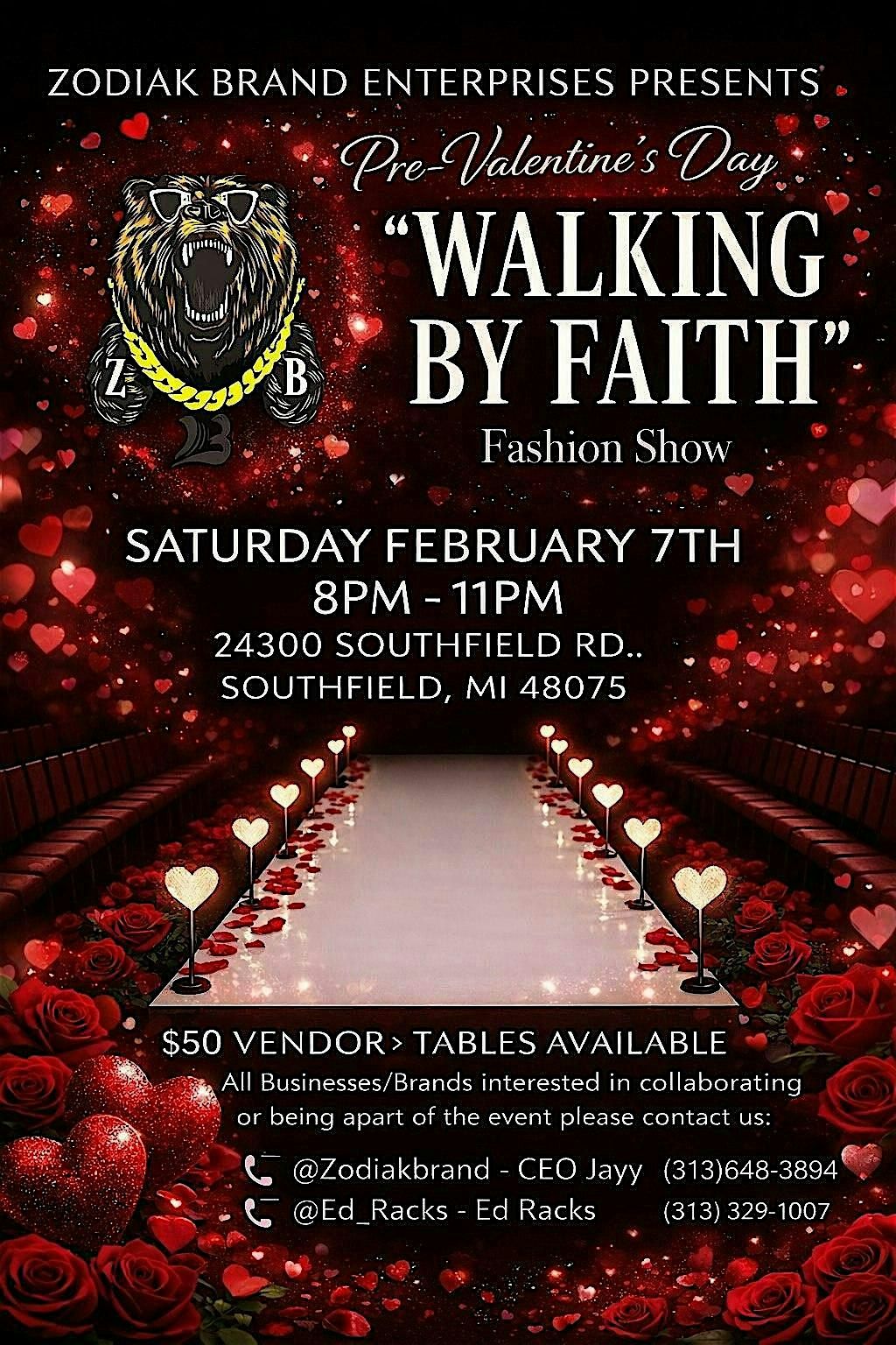 Welcome to “Walking By Faith” - Fashion Show! Join us for a night to remember filled with the latest trends and styles. This in-person event will be held at the Premiere Hands Social Event Center, where you can enjoy a showcase of the latest fashion,live music and food . Get inspired by our talented models as they pop out & show off the hottest looks of the season. Don't miss out on this opportunity to experience a night of fashion and fun.$50 Vendor tables also available for businesses & brands interested in being apart of the event. Contact us to lock In your spot. See you there!