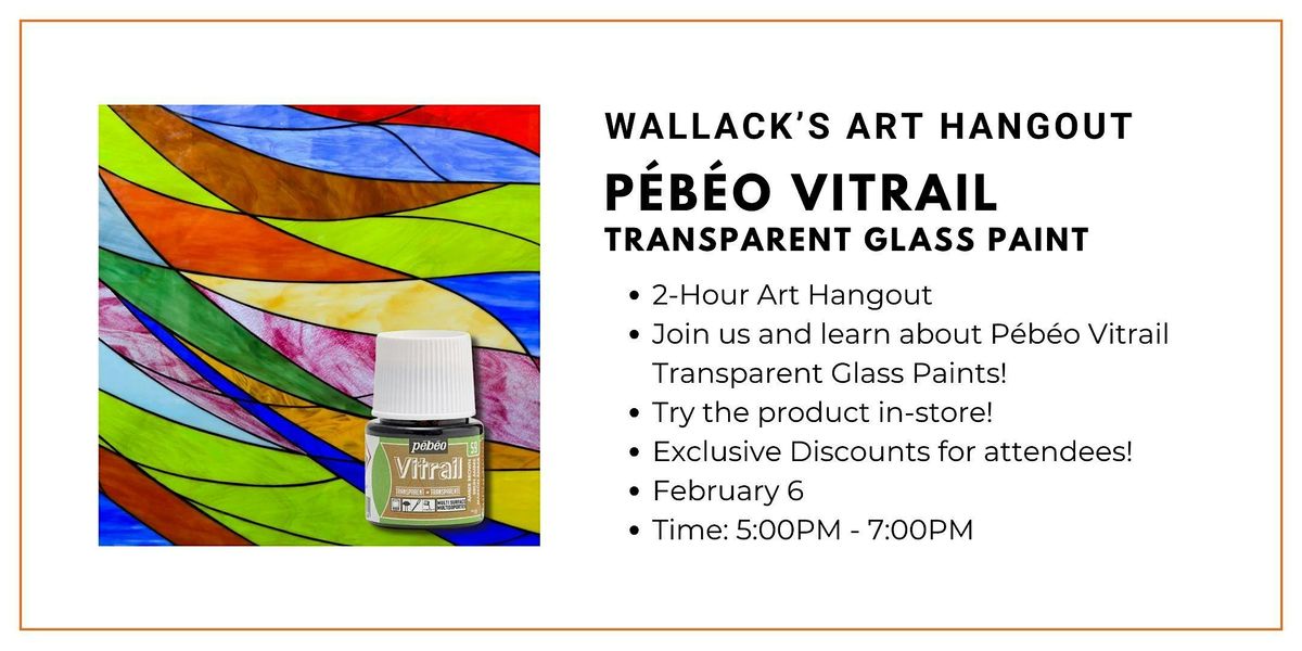 Get ready for an electrifying experience at our upcoming art hangout, where creativity knows no bounds! Join us for an unforgettable session exploring the vibrant world of Pébéo Vitrail Transparent Glass Paint. This is not just an ordinary workshop; it’s a chance to immerse yourself in a colourful atmosphere, unleash your artistic flair, and connect with fellow art enthusiasts!