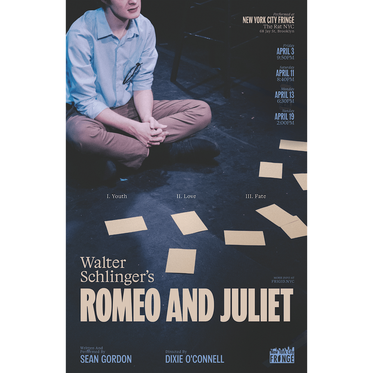 In this meta-theatrical solo performance, Walter reckons with the role our mentors play in our development and attempts to provide insight into the world's most famous love story. While desperately trying to share his work with anyone who will listen, he grapples with the notions of youth, tragedy, and validation.