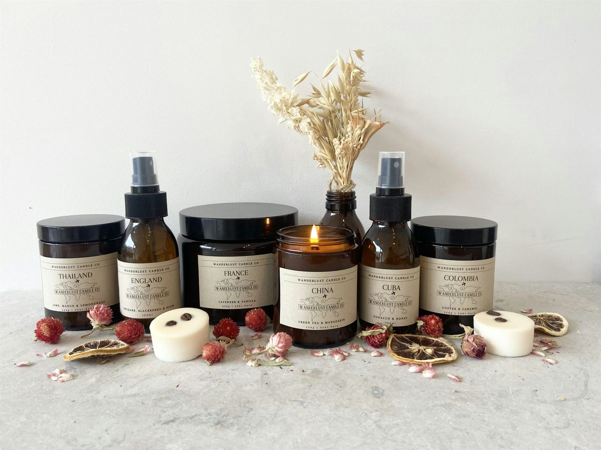 During the workshop you will have the opportunity to create with intention, and take home two of your own single wick candles, choosing from an exclusive selection of fragrances that are not available in our Wanderlust Collection.