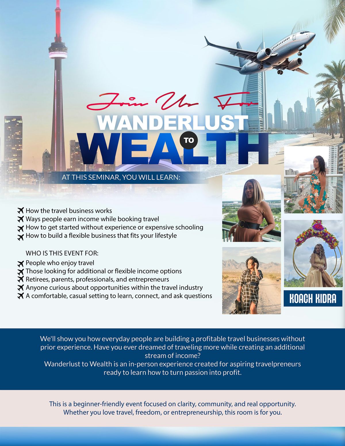 Wanderlust to Wealth is an in-person experience created for aspiring travelpreneurs ready to learn how to turn passion into profit.
