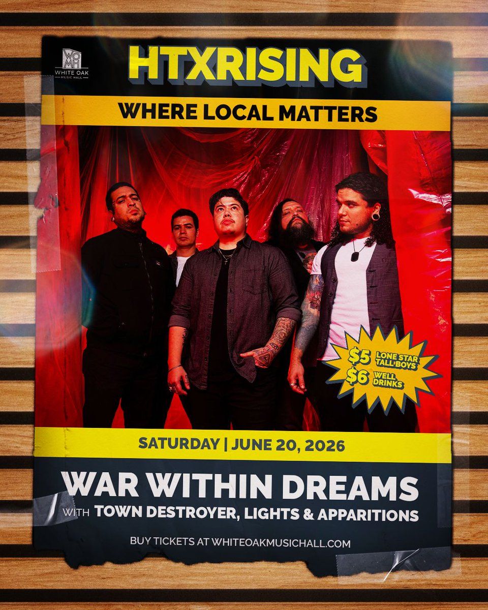 🌟 Journey into wonder at War Within Dreams, where extraordinary experiences await around every corner! 🏛️ Set against the backdrop of White Oak Music Hall - Upstairs in dynamic Houston, TX, this event promises to exceed all expectations. 📅 Join us on June 19th, 2026 at 06:00 PM for a celebration that combines innovation, entertainment, and community spirit in perfect harmony. ✨ There will be an atmosphere where memories are made and stories come alive, ensuring every guest experiences something truly remarkable. 🎊 This is more than just an event; it's a journey into the extraordinary!http://maps.seatics.com/GeneralAdmissionEvent_2018-06-26_0902_SVGC_tn.gif