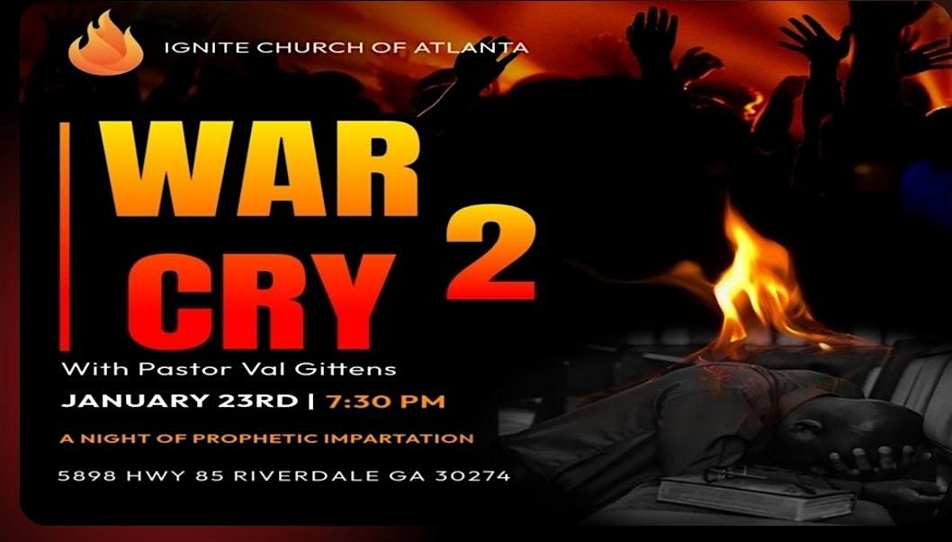 Meet me at 5898 Hwy 85, Riverdale, Georgia. Jesus will be there, Saving, Healing, Delivering, and setting those who are captive FREE. Come with an expectation to receive from the Father a spiritual awakening and prophetic Impartation. This is a "War Cry," and it's time to be revived to do the work of our Father.