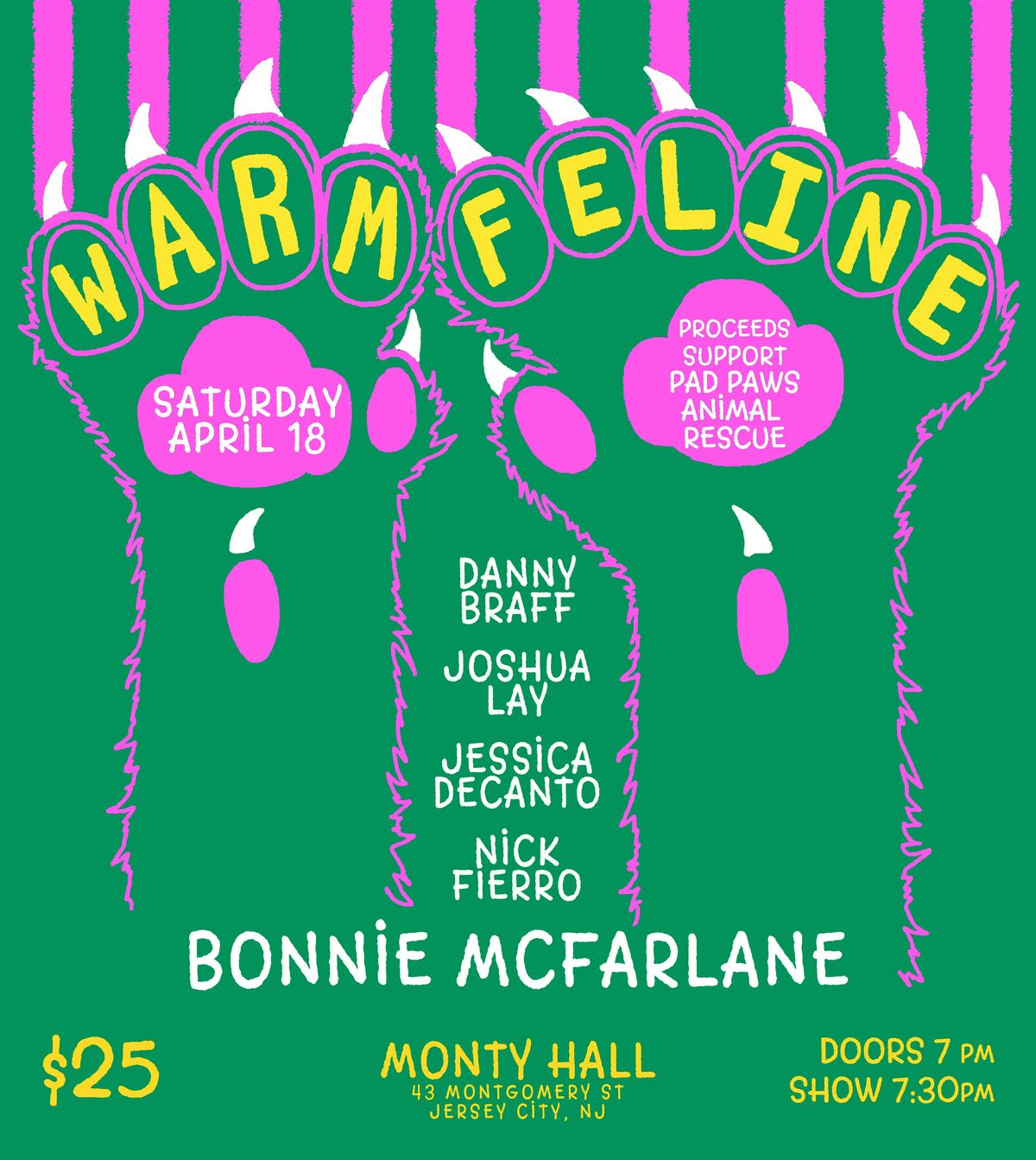 Joshua Lay, Nick Fierro, Jessica DeCanto, Danny Braff, and Bonnie McFarlane will be performing comedy in the spirit of fundraising for the local Jersey City four-legged community. Proceeds will be donated to PAD PAWS Animal Rescue.