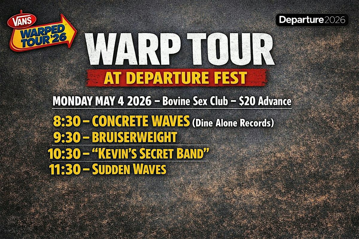 Get ready for a full‑throttle night of skate‑punk chaos as Warp Tour at Departure Fest takes over the stage. Expect high‑energy sets, fast riffs, and the kind of sweaty, sing‑along mayhem that made the Warped Tour era legendary.