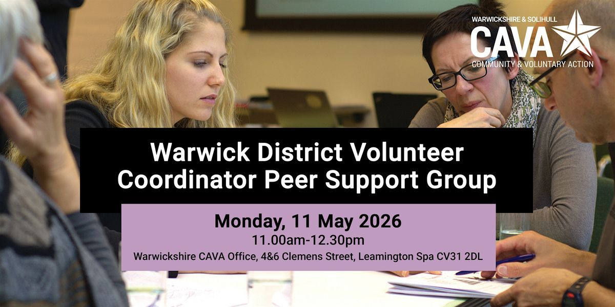 This is an opportunity for people who recruit and support volunteers within Warwick District to come together and support each other, share ideas, help problem solve and have the opportunity to identify and raise any particular training requests that CAVA can provide.