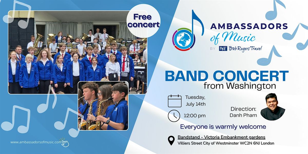 Free concert in London! Young musicians from Washington live at Victoria Embankment Gardens – July 4th, 12:00 PM. Free entry!