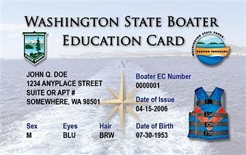 Recreational boaters in Washington are required by law to complete a boating safety course and carry a WA State Boater Education Card.