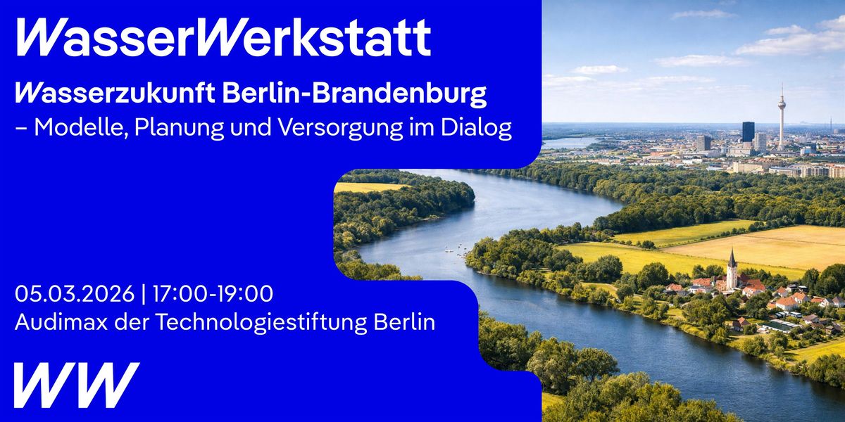 Die kommende WasserWerkstatt findet statt unter dem Titel: "Wasserzukunft Berlin-Brandenburg: Modelle, Planung und Versorgung im Dialog"
