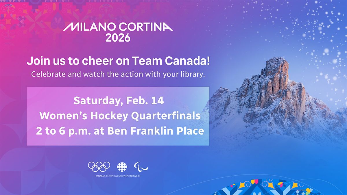 Join CBC Ottawa and Ottawa Public Library at Ben Franklin Place on Saturday, Feb. 14, for a free, family-friendly afternoon. Experience the excitement of the Olympic women’s hockey quarterfinals surrounded by your community. Catch all the action of the game on the big screen with fellow fans and enjoy an afternoon packed with activities for all ages.