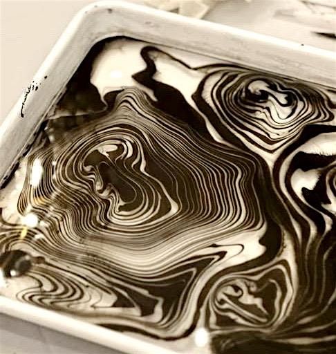 Learn the art of Suminagashi, an ancient Japanese water marbling technique, with local artist Julia Starr. Watch as sumi ink droplets bloom and swirl across the water in mesmerizing, organic patterns that never repeat. In this class, you’ll create your own unique marbled prints perfect for collaging or framing as works of art for your home. You’ll discover why this meditative art form has captivated artists for centuries.
