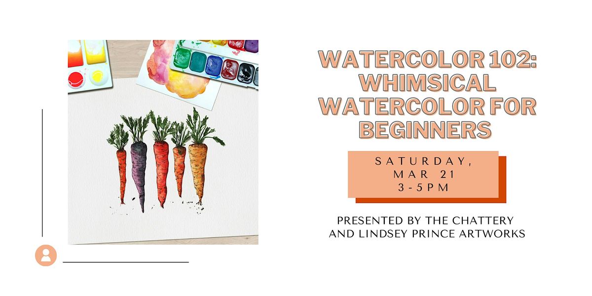 Supplies: All supplies included. Participants will be using shared watercolor supplies. Everyone will walk away with a finished piece at the end of the class. If you have your own preferred watercolor supplies and would like to use them, please feel free to bring them along.