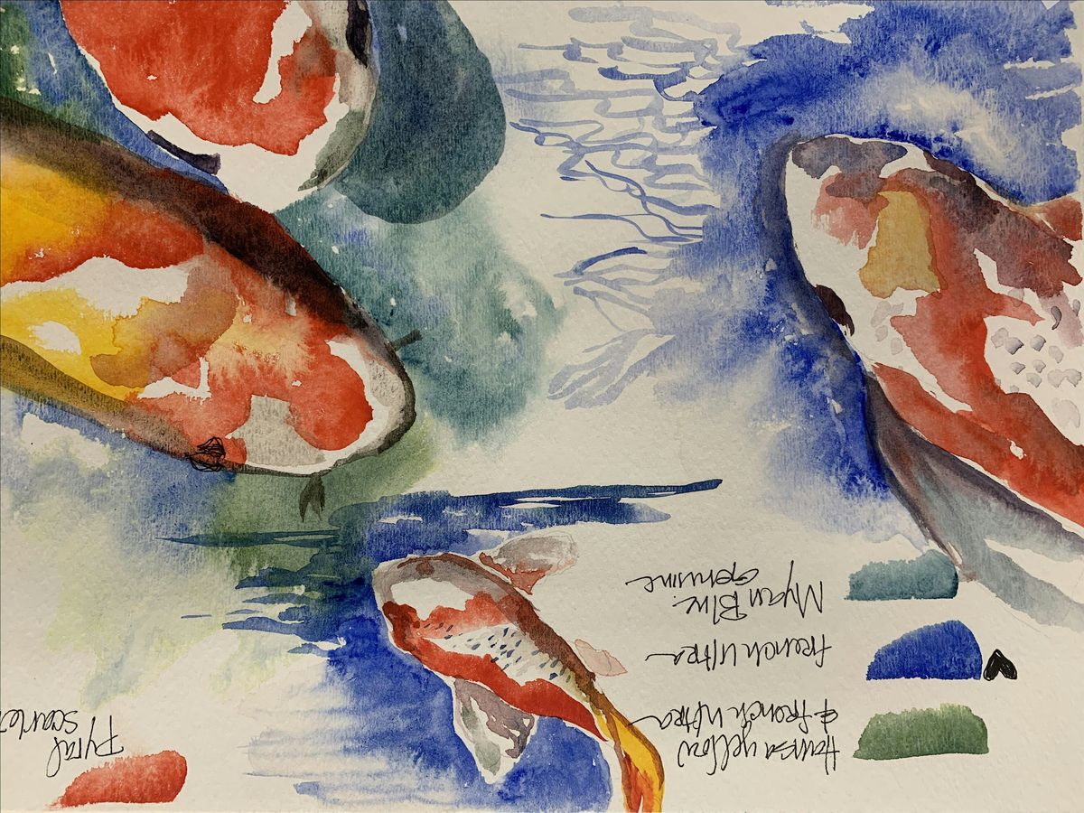 This workshop is for beginners. Can't draw- NO WORRIES! Jenny will have a pattern available to trace. We will go over basic watercolor techniques while painting your Koi. You will learn wet on wet, dry brush, shadows, brush strokes, blending and more. In this workshop you will be encouraged and coached in a positive environment.