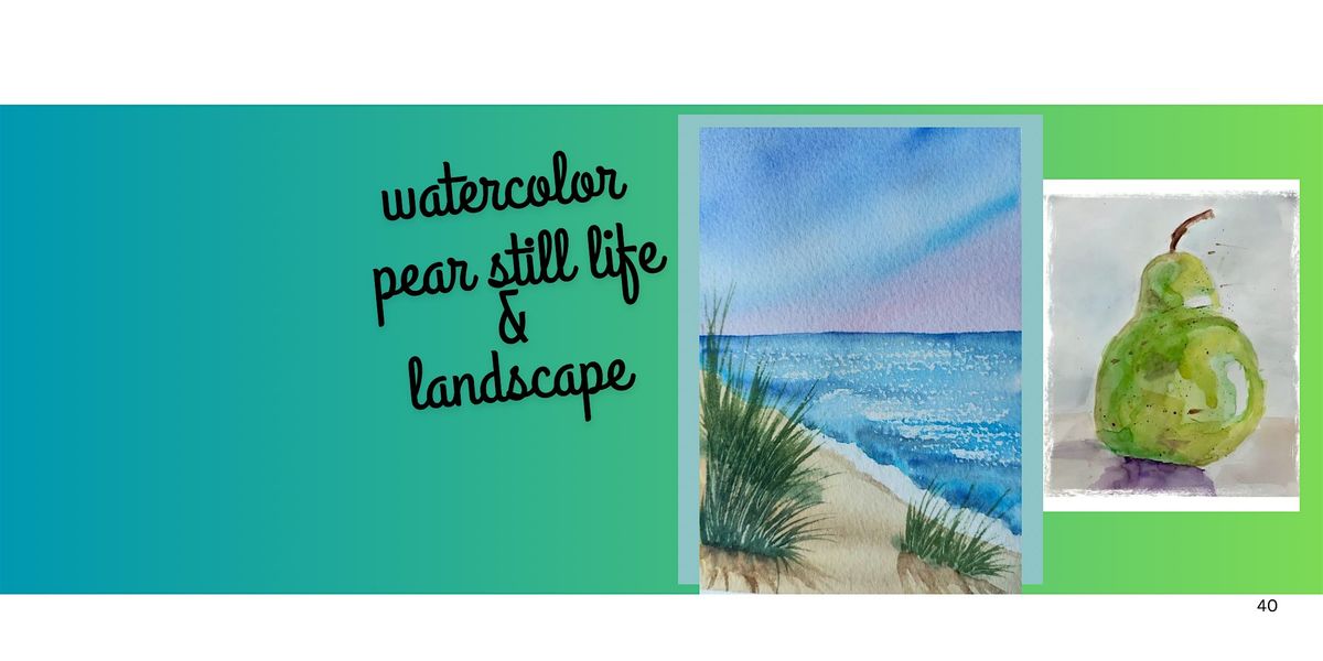 Discover the beauty of watercolor in this relaxed, beginner-friendly workshop designed to build confidence and creativity. Students will learn essential techniques such as washes, blending, and simple shading while painting a pear still life and a colorful landscape. Step-by-step guidance makes the process approachable, helping you understand how watercolor works while developing your own loose, expressive style. No experience necessary—just come ready to paint and enjoy the process.