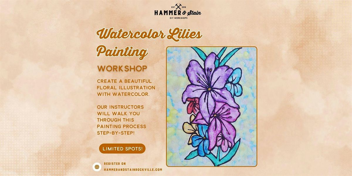 Join us at Hammer & Stain Rockville for a relaxing and creative Lilies Painting Workshop! Paint a beautiful lilies-inspired painting while learning watercolor techniques in a fun, welcoming environment.