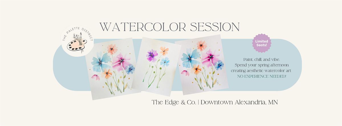 Join Leanne for a laid-back Sunday watercolor session at Edge & Co. Coffee and Boutique in downtown Alexandria. Sunday April 18, From 2–4pm, you’ll paint, chill, and vibe your way through a guided floral watercolor experience—perfect for beginners or anyone craving a creative reset.