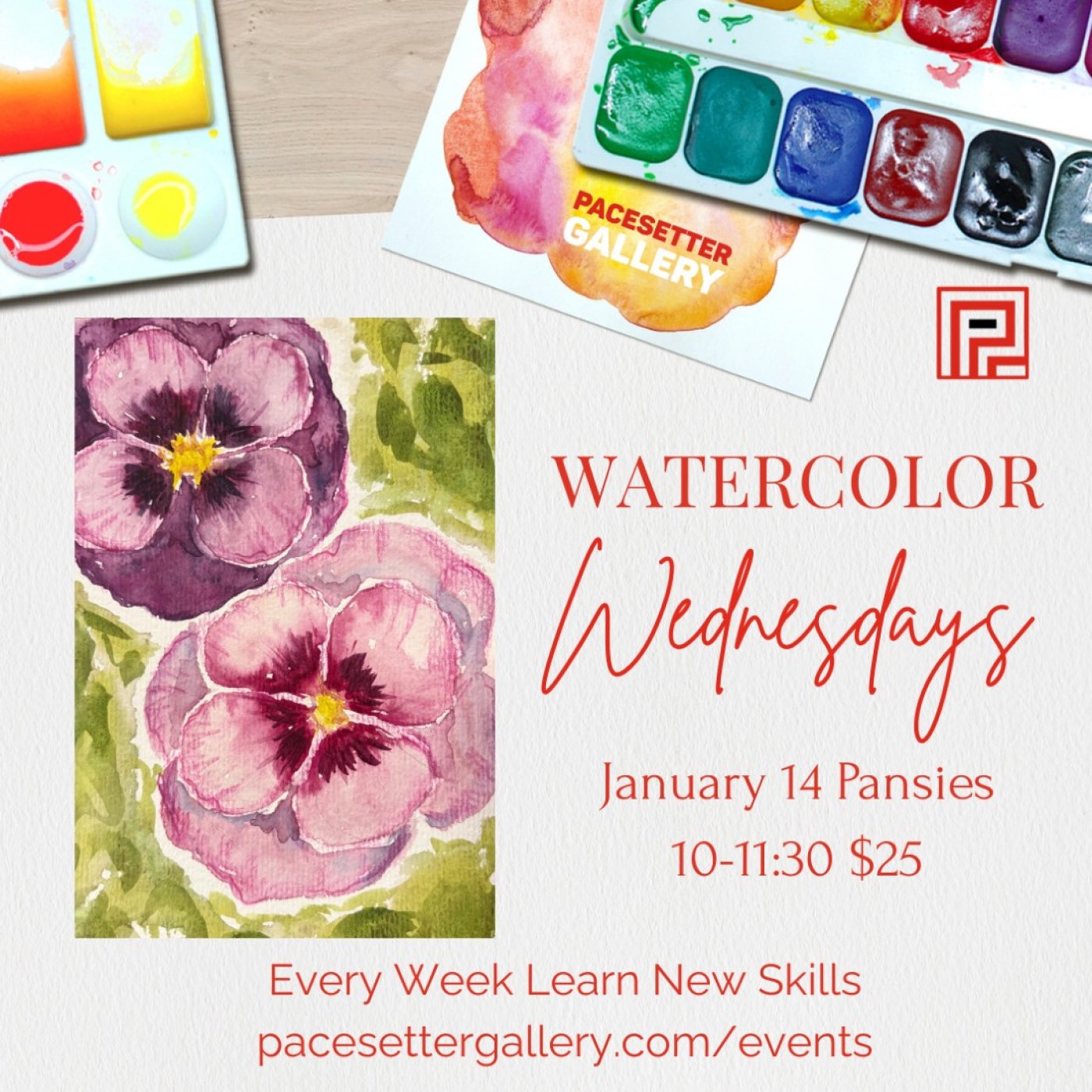 This class is weekly and can be taken once or each week! Tickets must be paid at ticketing website, or ahead of time by phone 601-488-0345 by Tuesday evening so we can prepare the correct number of watercolor stations.