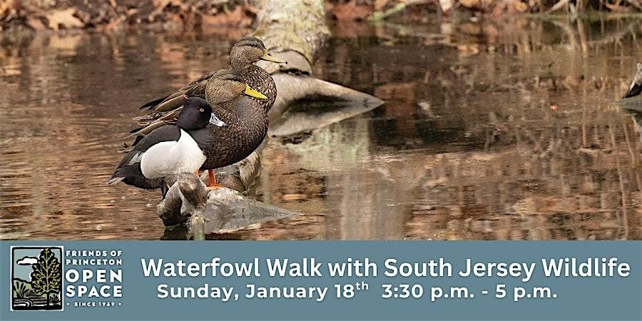 Join the Friends of Princeton Open Space (FOPOS) and South Jersey Wildlife Tours for a guided Waterfowl Walk on Sunday, January 18th at 3:30pm. We will explore the trails around the lake at the Billy Johnson Mountain Lakes Nature Preserve in search of the fascinating waterfowl wintering in Princeton.