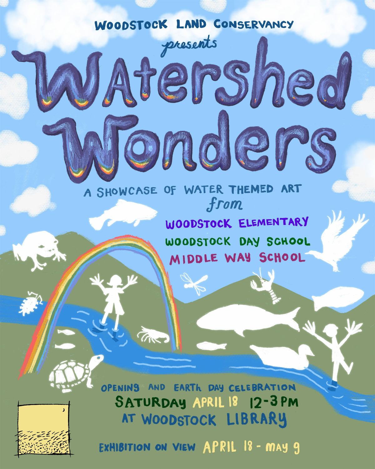 An exhibition of water-themed art from students at Woodstock Elementary, Woodstock Day School, and Middle Way School. Presented by Woodstock Land Conservancy, Woodstock Day School, and Woodstock Library.